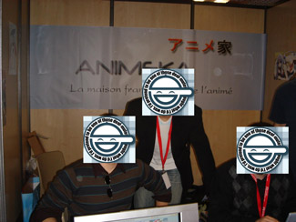 6,5 personnes sont sur le stand AnimeKa. Autour de moi, Gugu donc, Gaston, Echnic, Lapin de passage (mi-temps chez Manga Pop), Kalnex, & last but not least JRD.