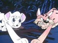 | Une inquiétante apparition est remarquée dans la nuit, au-dessus d'un rocher surplombant un village. C'est un ours qui attaque le village et tue de nombreuses bêtes. Il fait jour, Léo construit un radeau pour chasser l'ours qui se trouve, d'après un ami de Mandy, à l'aval du fleuve. Le léopard embarque avec lui. Après un terrible déluge, ils rejoignent la rive et font connaissance avec Babu et sa mère. Ils font la découverte de nouveaux paysages. Le léopard et Léo découvrent la terre des ours. Ils apprennent à connaître leur mode de vie. Mais Léo découvre la terrible vérité : ils sont carnivores ! Outré, il s'enfuit. Mais il reste bloqué sur la rive car des piranhas l'empêchent de traverser. Un gros lézard apparaît et veut dévorer Babu. S'engage alors un rude combat entre la mère de Babu et le lézard. Léo, appelé à l'aide par le léopard et la mère impuissants, délivre Babu. La mère de Babu indique le bon chemin du retour à nos amis. |