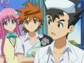 Le jour suivant démarre bien calmement en l’absence de Lala. Seulement, en plein cours, elle débarque et emmène Rito dans une autre salle. Suite à une discussion où chacun prend la parole, Rito découvre qu’il n’aura pas à se battre s’il devenait Roi et encore moins de vivre sur Deviluke, le contraire de ce que lui disait Zastin la veille. Pendant que Rito regarde bien gentiment Lala lui faire à manger, Haruna entre dans la pièce. Tout-à-coup, elle tombe dans les pommes. La raison est simple, un poulpe géant sort de Kiekie Container-kun. L’invention de Lala fait des siennes, il décongèle tout ce qu’il stockait ! Calamar géant, homard géant,… C’est encore pire qu’une guerre intergalactique comme dirait Rito ! |