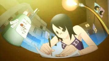 Pratique, expressif, et là aussi économique, la japanimation utilise depuis longtemps les techniques du manga avec des scènes figées crayonnées, et des arrières plan stylisés et épurés à l'extrême.