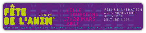 Du 17 au 21 mars, on pourra participer à la 7e édition de la Fête de l'animation, en six lieux de Lille et de Tourcoing. Différents aspects du travail de l'auteur de bandes dessinées Enki Bilal y seront mis en avant, tout comme la production allemande. De nombreux films d'animation seront aussi projetés comme Chico et Rita, Les Trois Brigands ou Goodbye Mr. Christie, en présence du réalisateur. Des rencontres, des ateliers, des installations artistiques autour du jeu vidéo et des soirées liant musique et animation sont également au programme. La production japonaise sera aussi très présente avec une convention, une conférence et les projections des films Summer Wars, Colorful et Evangelion 2.22. Il y aura aussi des épisodes de School Days, Casshern Sins, The Tatami Galaxy, Princess Jellyfish, Fullmetal Alchemist: Brotherhood, High School of the Dead et Gundam OO (saison 2).